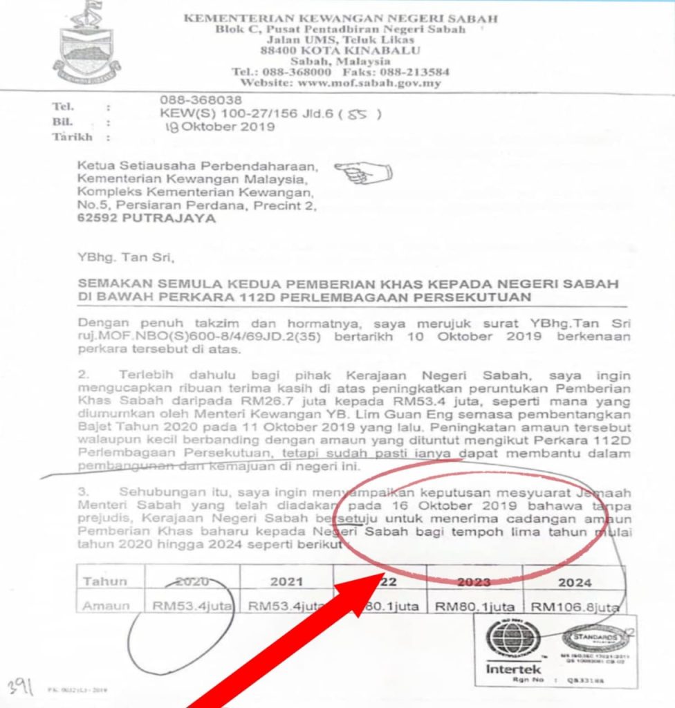 The letter also confirmed that a State Cabinet meeting had been held on 16 October 2019 to discuss the offer made by the Federal Ministry of Finance hence by convention, ‘collective responsibilities’ stipulates that all Cabinet Ministers who attended the meeting are equally responsible to the decision made on that day. So perhaps media practitioners can interview individuals in the likes of Wilfred Madius Tangau, Christina Liew, Ewon Benedick, Dr Yusof Yaacob and others as well who were State Cabinet Ministers in 2018-2020 on this matter.
