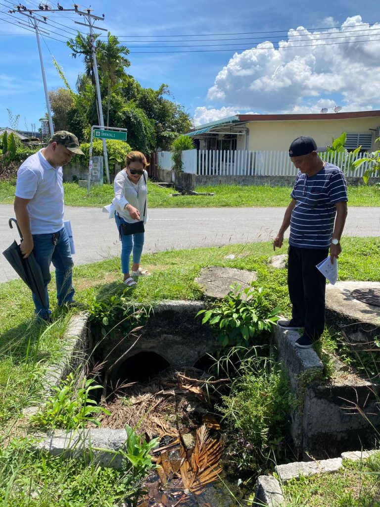 Warisan members involved in the inspection at Taman Oriental on Sunday were the Penampang Division Chief, Jeffrey Leiking, Wanita Division Chief, Junny Simol, Wira Division Deputy Chief, Jeremiah Stambul and Political Assistant to Datuk Darell Leiking, TV Yong.