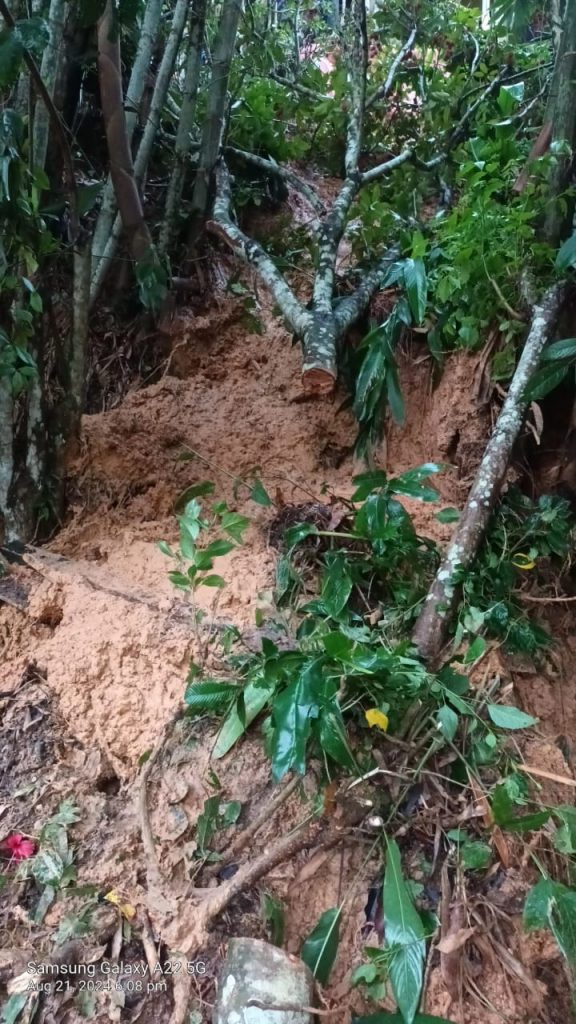 Selain daripada itu, pokok buah-buahan milik Encik Muhamad Din turut tumbang akibat tanah runtuh tersebut.