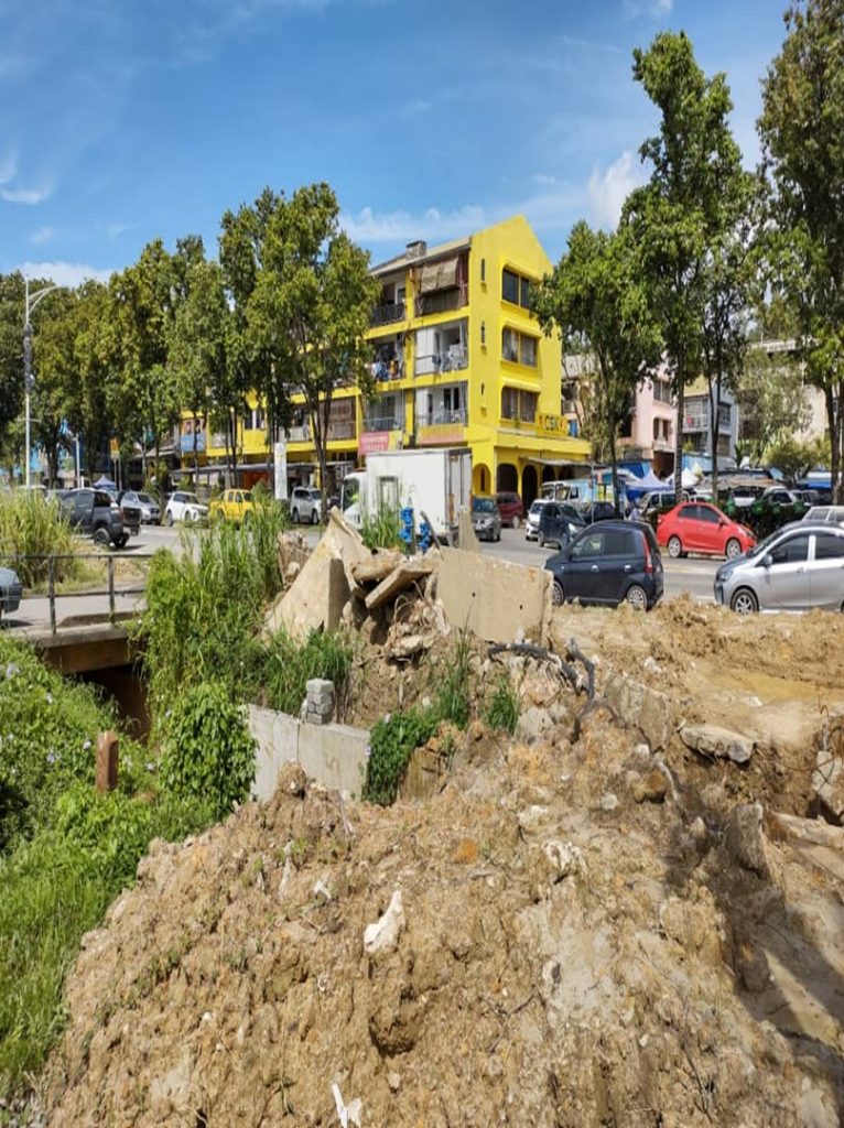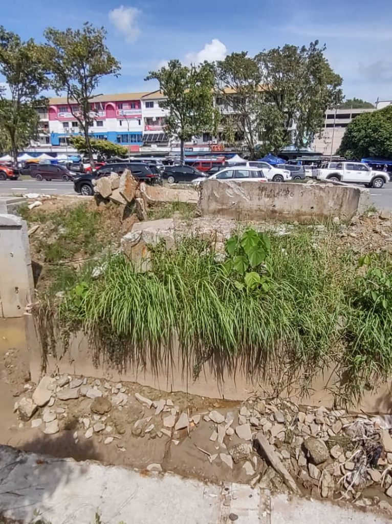 “Several Penampang folks have told me that these huge precast concretes and heap of soils is such an eyesore and could end up being washed into the Parit Juta causing unnecessary blockage.