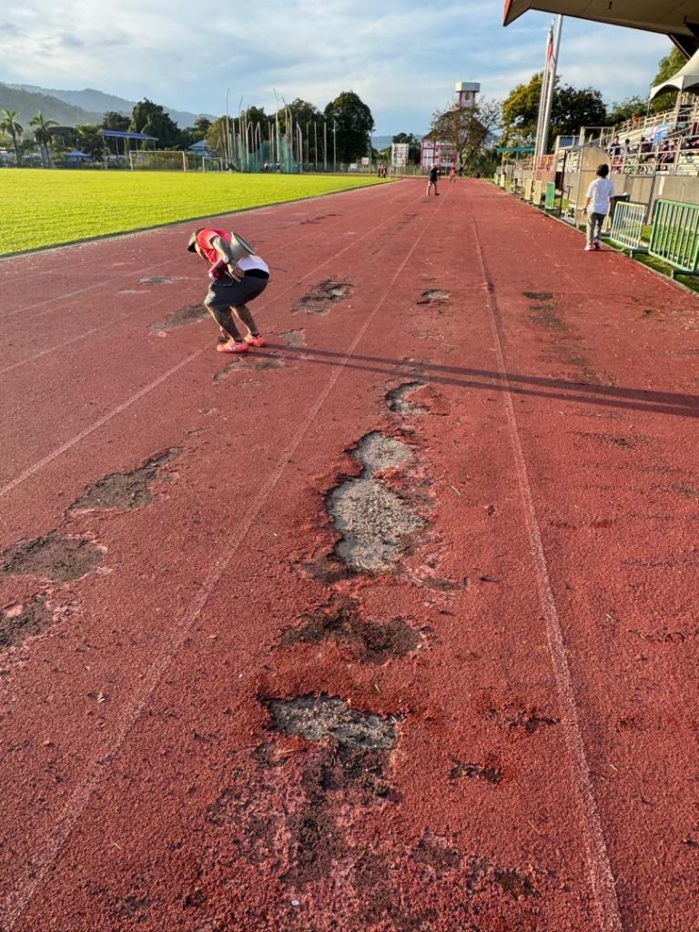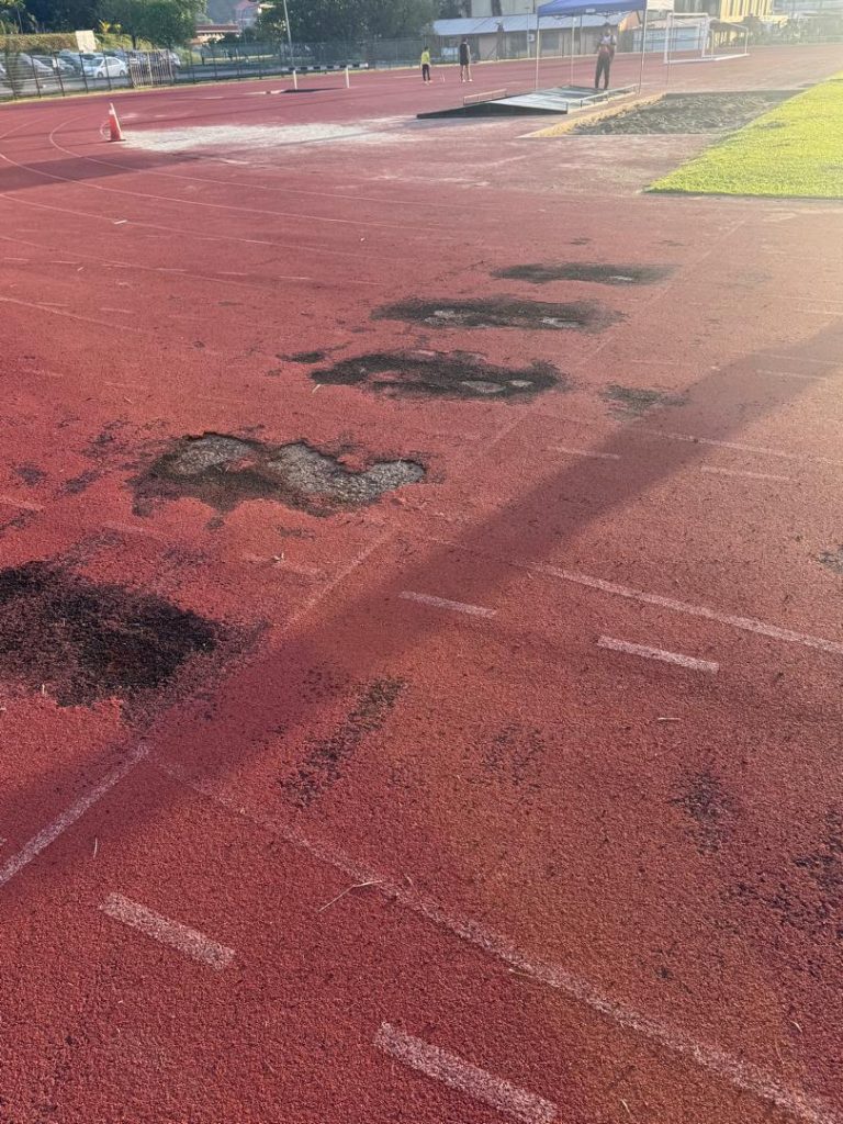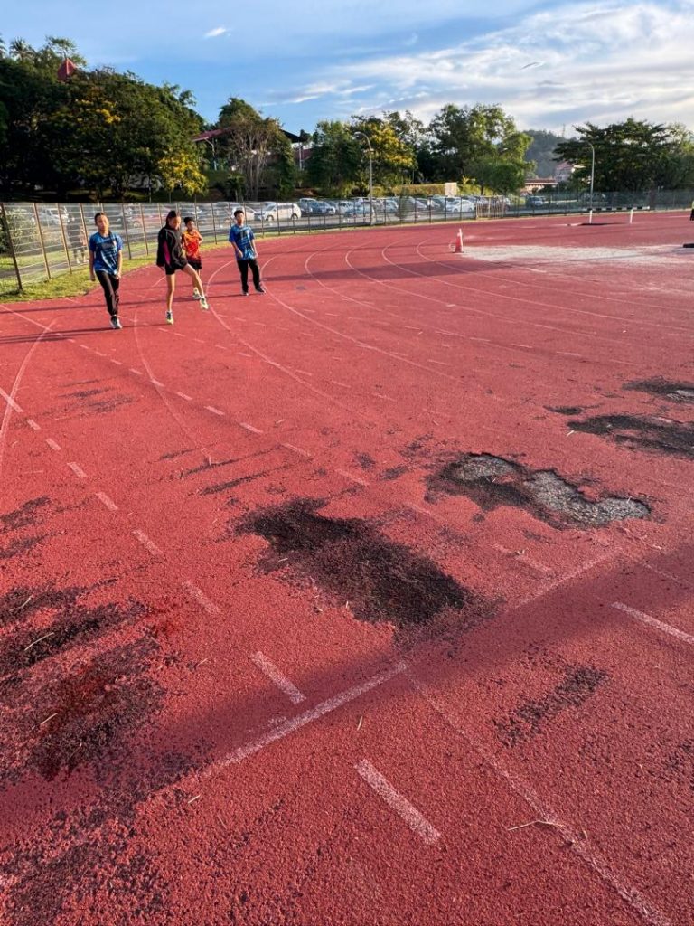 This complex is being used by secondary and primary schools all over Penampang including some from Kota Kinabalu and Putatan not only for training purposes but also as venue of their respective sports day so the worn out track is dangerous and can injure schoolchildren