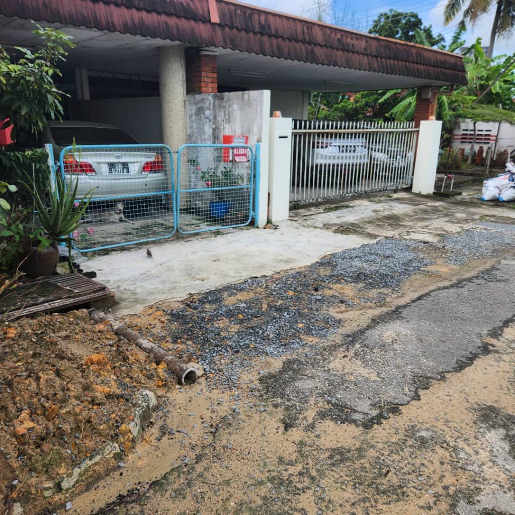 Madam Ng, a resident of Taman Delima Kepayan, expressed her frustration with the Water Department for leaving the pavement in front of her house in a damaged state after repairing a leaking pipe.