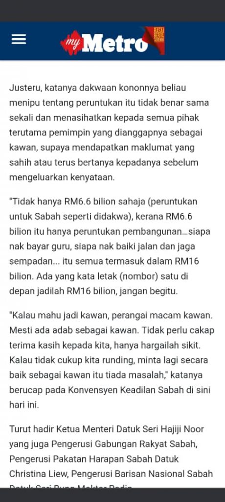 Malah, Kerajaan GRS juga telahpun menerima RM300 juta dari Kerajaan Persekutuan sebagai pembayaran interim keatas Hak 40% Keatas Cukai yang dikutip sepertimana yang telah dipersetujui oleh Hajiji.